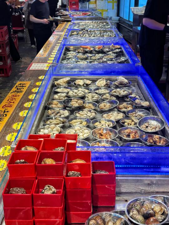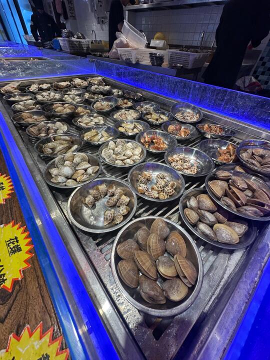 进门就能看到海鲜类,铁盘都是15元一盘,鲜活的食材,一比就知道这个价格值不值,旁边还有鲜切牛肉之类的食材,还有好多我根本就叫不上名字,总之就是主打一个眼花缭乱。