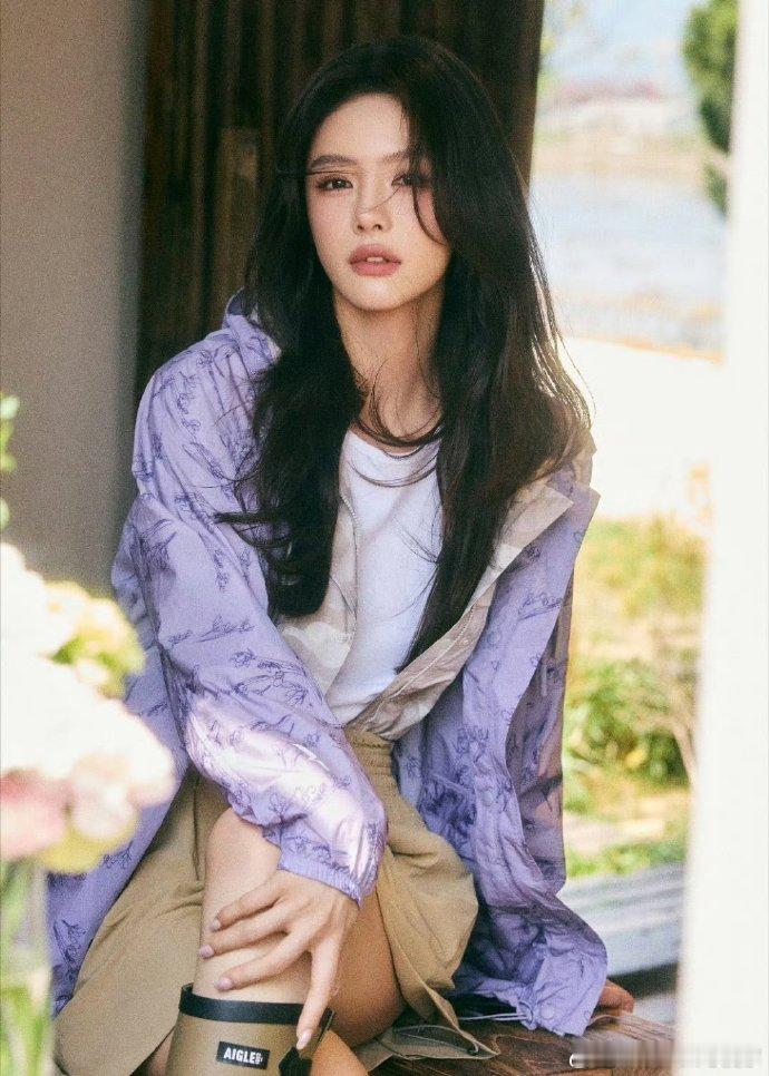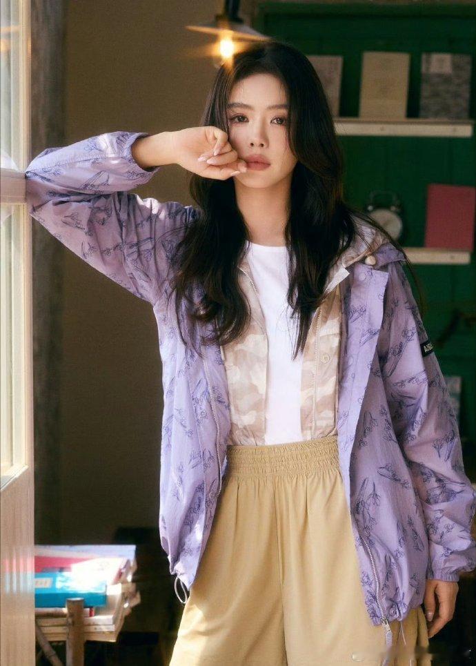 蔡文静春日女友谁能抵抗蔡文静的春日魅力!紫色外套搭配卡其短裤,甜酷又清新,妥妥
