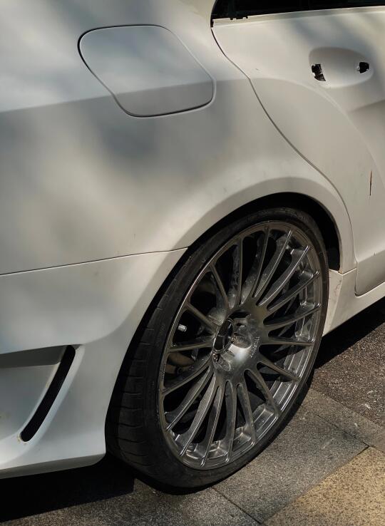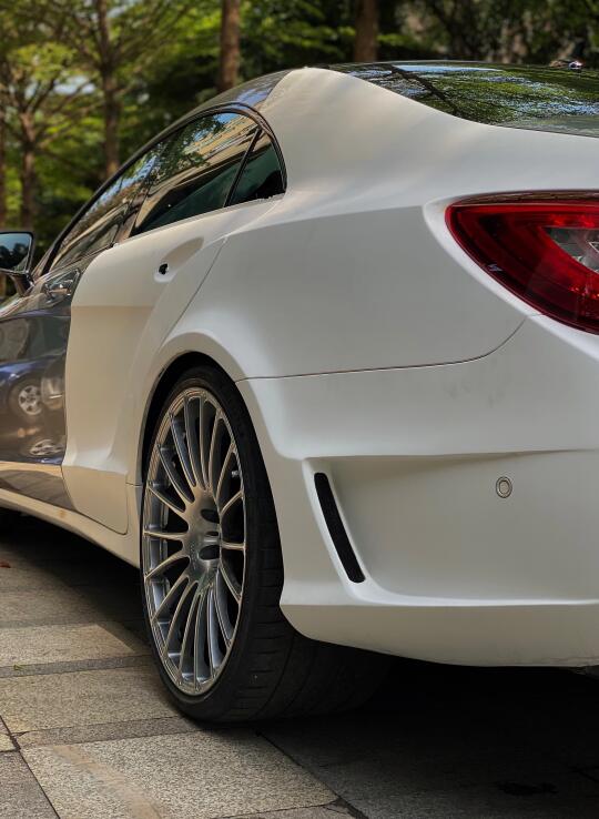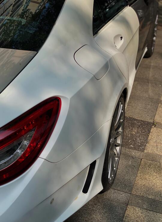 CLS63 后宽体套件一体化安装达成 该修整的修整了,该处理的处理了,不该弄的也弄了。 期待一下贴膜和更换轮毂后的效果……
