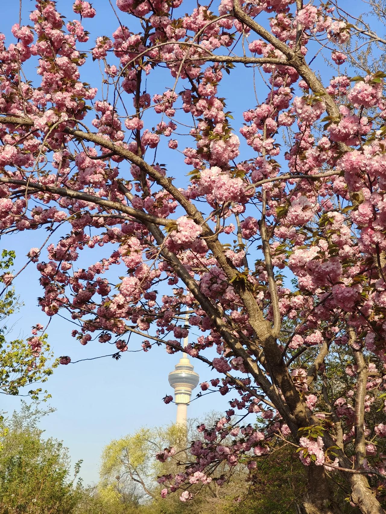 玉渊潭晚樱到了盛开期,一早上,6点多,公园里赏花的人就很多了。当然大部分是老年人。没有早樱开花时的人山人海了。晚樱也很漂亮。