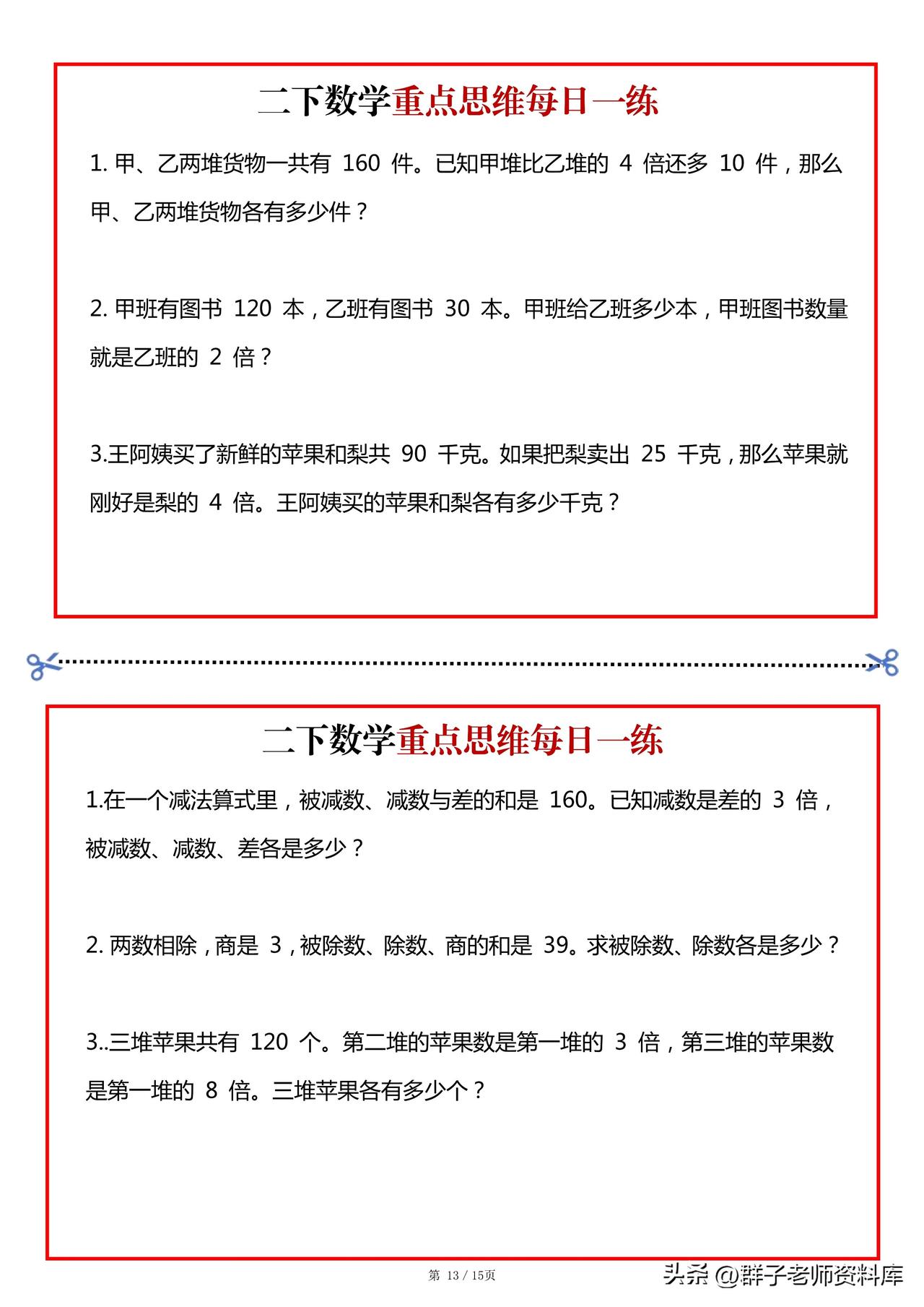 二年级数学下册重点思维每日一练