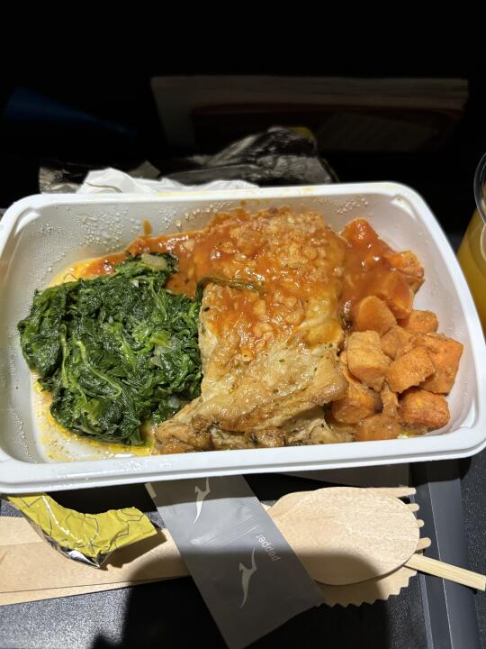 七小时吃三顿 吃得我胃疼[石化R][石化R] 出发墨尔本前一天jestar突然cancel航班 隔了两个钟自动分到了差不多出发时间的澳洲航空😋 Qantas比阿提哈德还养猪 1️⃣正餐鸡肉红薯➕蒜香面包➕蛋糕 2️⃣timtam和饮料 3️⃣蘑菇派和🥤 鸡肉 面包和蛋糕好吃😋 蘑菇派不大行 闻着好香 吃起来一般般 wifi也好快 赚大了✌️