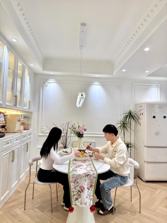 柔暖的室内光漫过木桌的纹理,布菜的动作轻缓地将菜肴摆置妥当,碗筷的碰撞声混着菜香