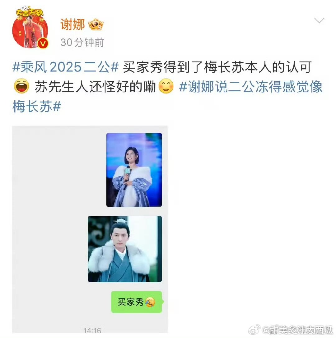 谢娜[超话]谢娜买家秀得到了胡歌认可乘风2025谢娜二公裹毛披肩,意外和梅长苏撞