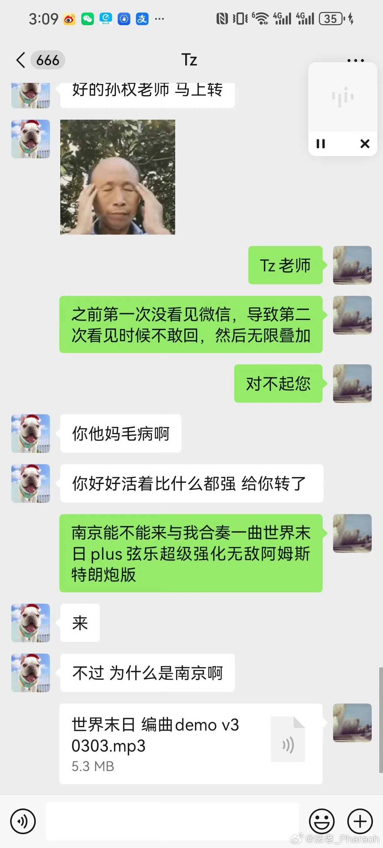 法老晒Rapper们的聊天记录,让他们帮忙宣传自己的演唱会,其中法老让Digi的Mac帮自己宣传演唱会,但显示法老被Mac删除好友,随后Mac回应:“谢邀,遥不祝”