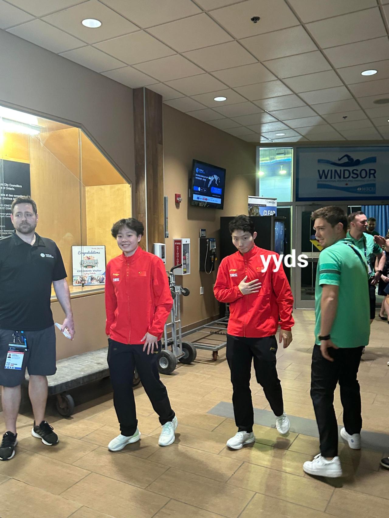 4月12日 陈艺文和王宗源这两人有点搞笑🤗哈哈哈,这拍照的小表情有点可爱哈哈哈哈哈哈王宗源 陈艺文 三米板跳水冠军 比赛现场
