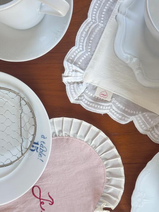 报告! 坏消息:韩国八角卡海关到不了了(后面补上 好消息:atelier15最新系列来了! 优雅线条元气蓝字母,又法又明媚说的就是它吧! 还有心心/花边餐垫现货!