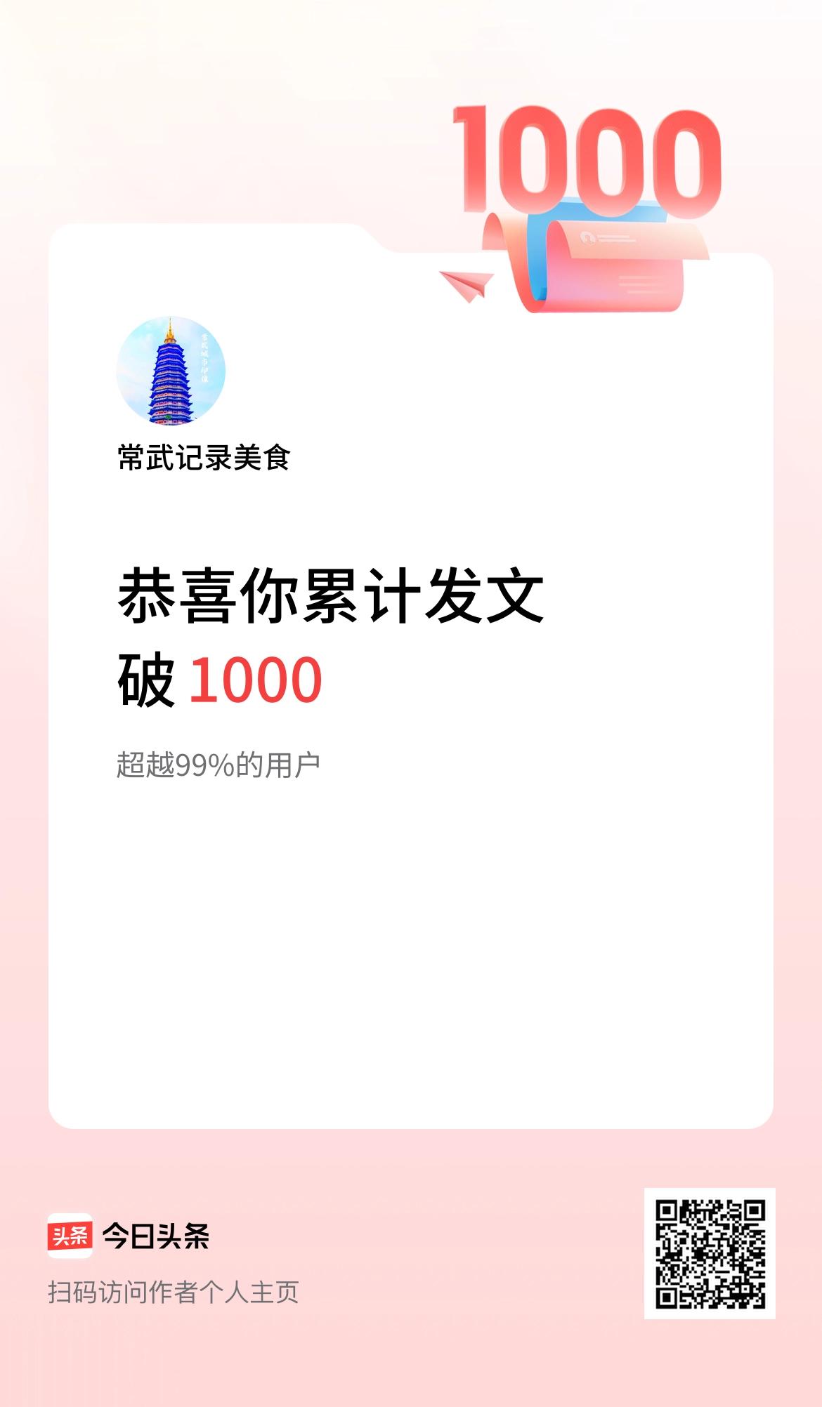 我在头条累计发布内容破1000啦!