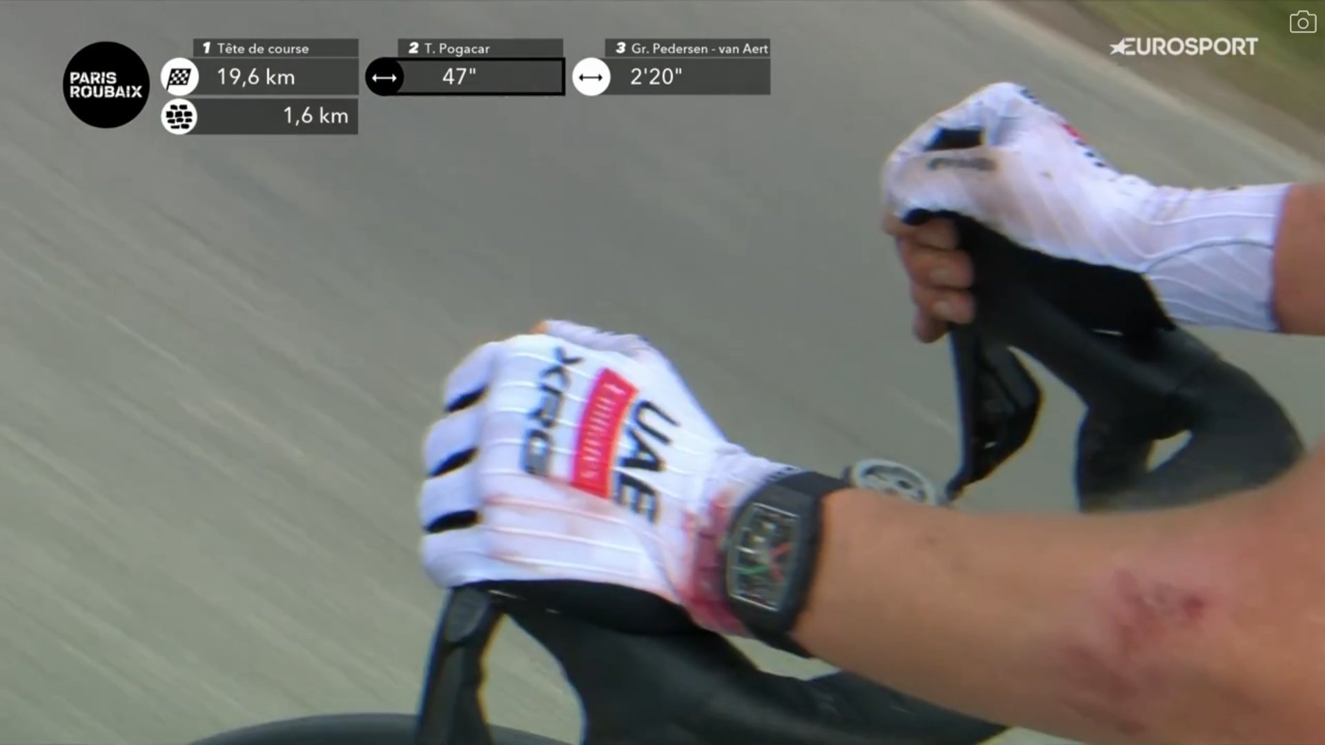 波加查坏车!另外,原来他的手受伤了...这比赛反高潮啊,这下没悬念了巴黎鲁贝骑行