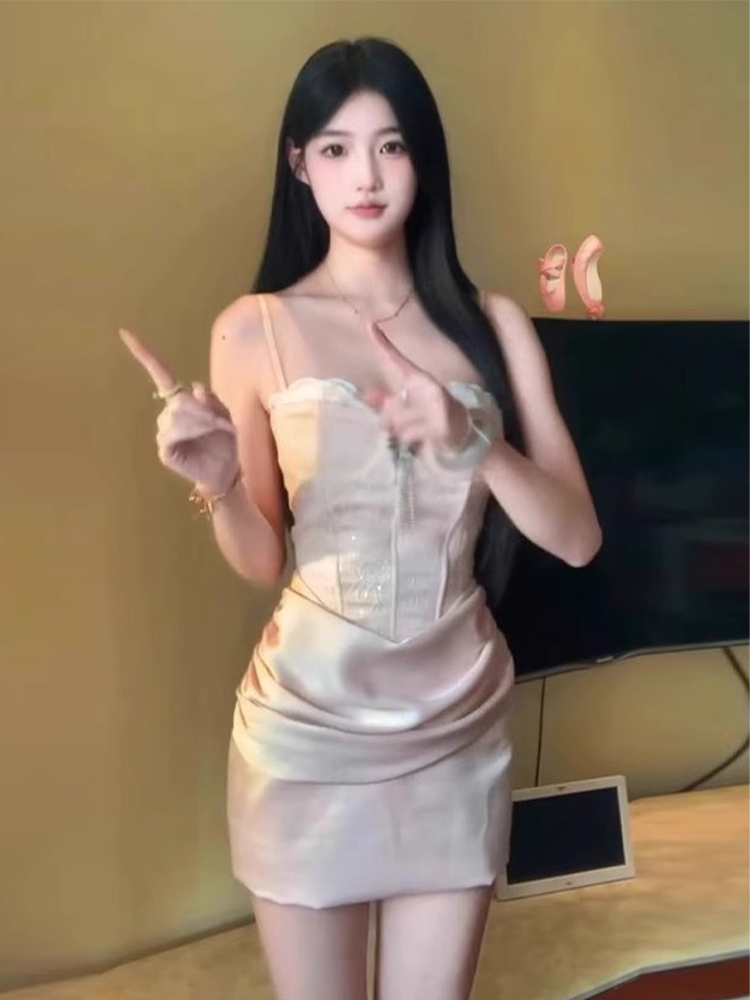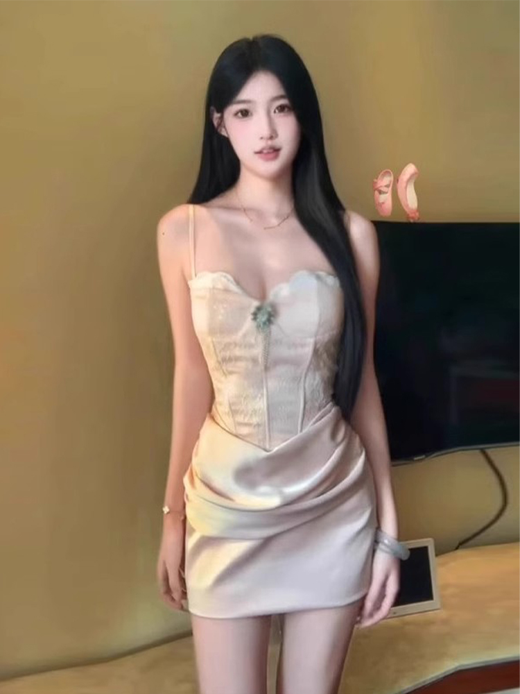 纯欲法式醋酸缎面吊带连衣裙女约会裙轻奢