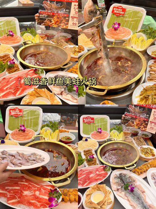🐸蜀滋香鲜鱼美蛙火锅:万象城附近的20年啦,成都老辈子扎堆来吃。主打活鱼活蛙,足斤足两!深水花鲢鱼我很爱,鱼肉很细嫩,越煮越香!稻田蛙个头好大,蛙腿紧实,都是蒜瓣肉,吃起好巴适。