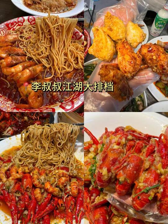 🦞李叔叔江湖大排档:开在居民楼下的龙虾大排档13年资格老店,来吃的都是附近的居民和老成都人。鱼香虾虾面酸辣开胃,面条很劲道!麻辣小龙虾桌桌点,香辣入味,虾肉Q弹紧实!