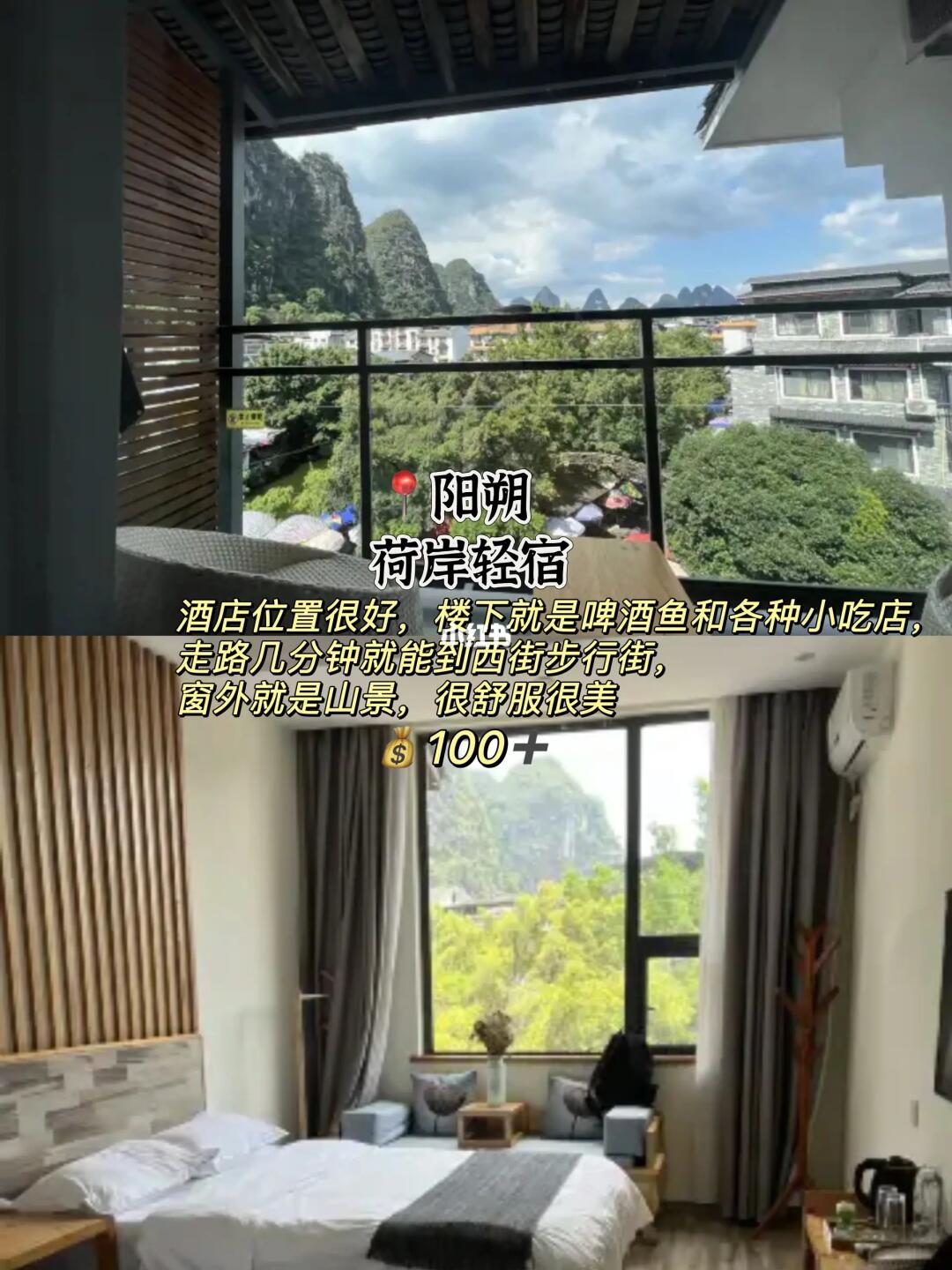 酒店位置很好,楼下就是啤酒鱼和各种小吃店,走路几分钟就能到西街步行街,窗外就是山景。很舒服很美
