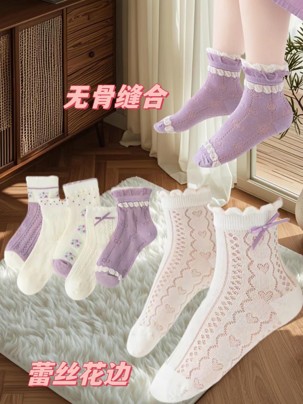 女童春夏薄款网眼袜袜子。这款儿童网眼袜是专为夏天设计的透气袜,轻薄透气不闷汗,独特的网眼设计避免夏天闷脚,不管是日常穿还是运动时间都非常合适.袜口防滑设计搭配无骨缝合,减少摩擦贴合脚型,保护儿童小脚丫,轻松搭配凉鞋运动鞋 ,穿上时尚又舒适,是每个小女孩的实用单品!