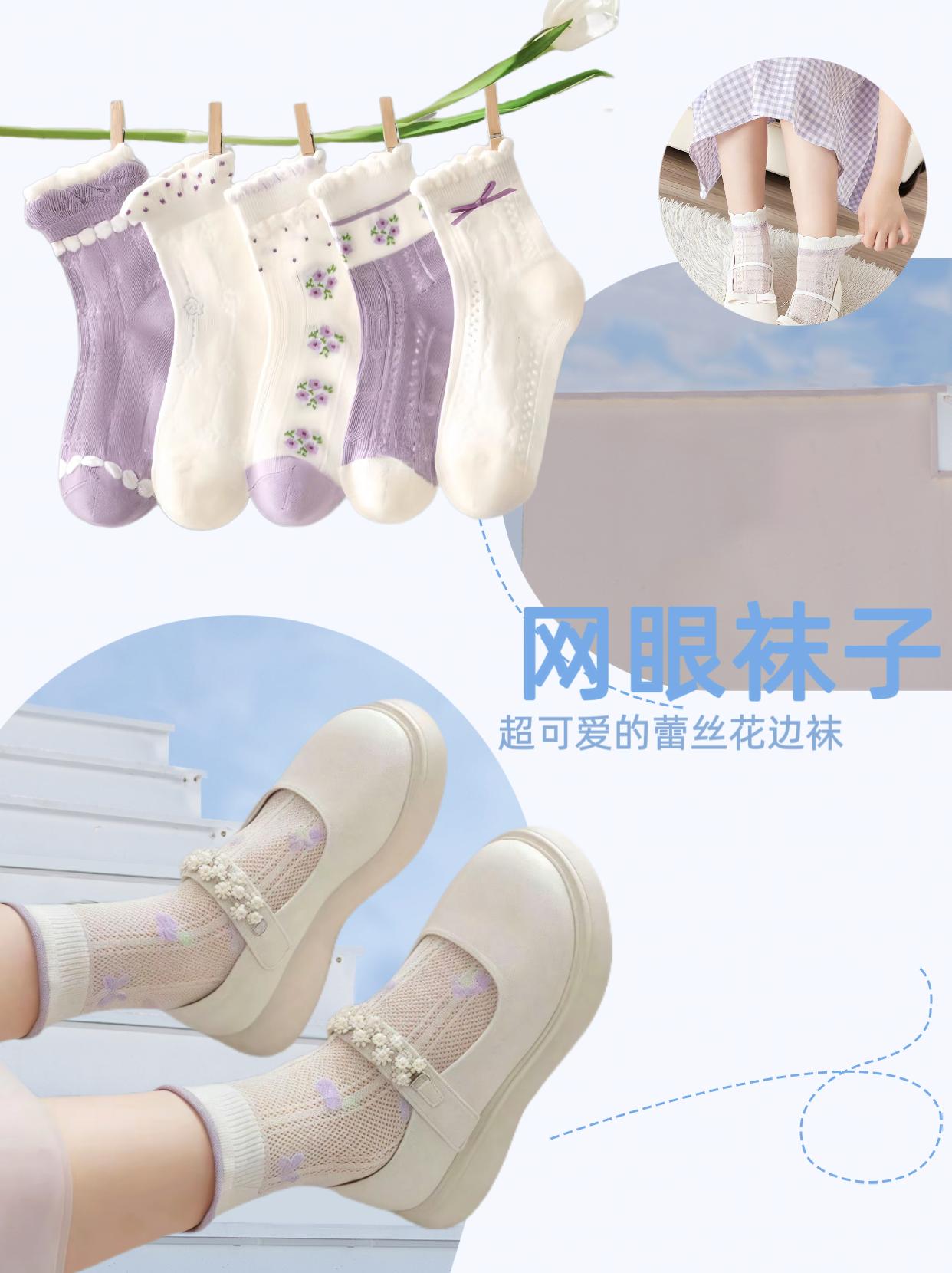 女童春夏薄款网眼袜袜子。这款儿童网眼袜是专为夏天设计的透气袜,轻薄透气...