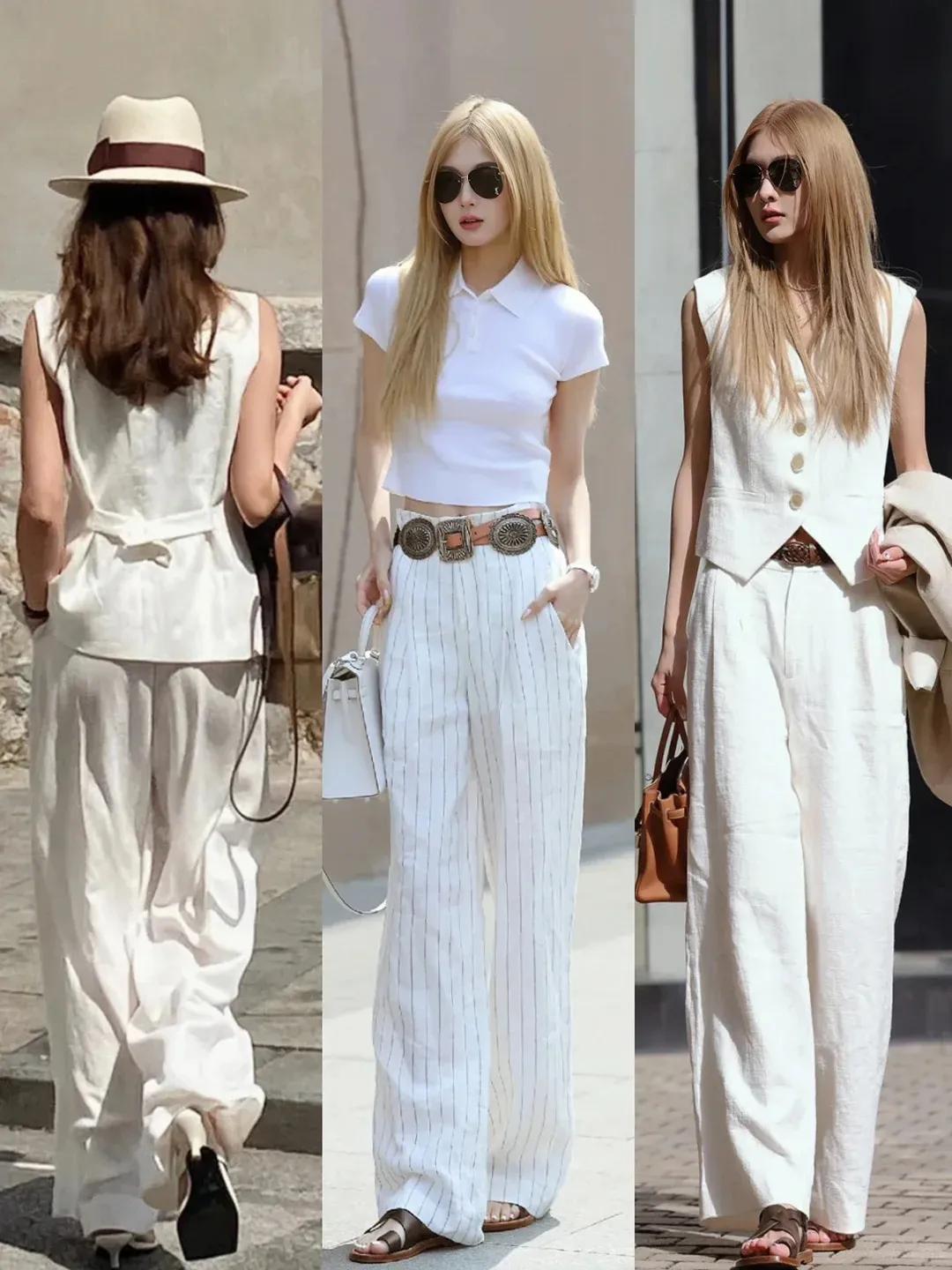 高级感拿捏住了,这些街拍简直是教科书般的示范! 不得不说,黑白搭配是最容易穿出高级感的。 选择简约又有垂感的单品,可以更好地修饰身材。 在这里,博主用心机感的露肤设计提升时尚感。 斜肩的黑色T恤,搭配一条白色的阔腿拖地裤,简约又时髦。 以及无袖的黑色背心,配高腰裤的时候加一条腰带强调比例,提升气场又高级。 全白色的穿搭更优雅,可以加入金色的配饰丰富层次感,精致贵气。