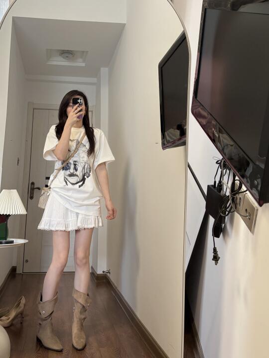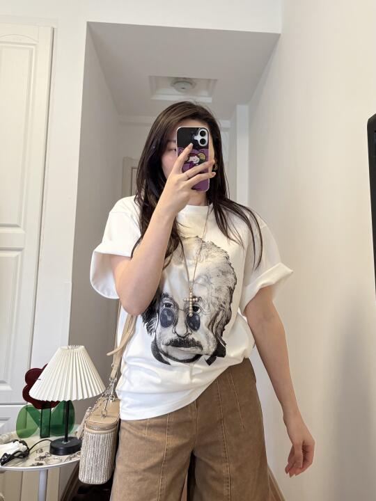 宽宽大大的纯棉印花T恤衫(是很大的一件哦)S码也很大~很厚实~ 白色短裙是百搭款,是老朋友了,去年的夏天我就穿了它~ 不想露腿也可以换成阔腿裤(身上的是A字版型的阔腿裤)我入的sx,有点小了,S刚刚好~ 或者微喇裤、铅笔裤,都可以,苹果身材真的不太挑裤子的~自己开心就好,也不必拘于一种风格哦~瘦与不瘦,都是你~ 良心分享,live图实出,所见即所得‼️