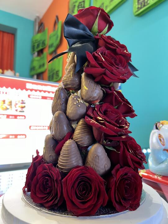 母亲节、520又快到了! 最近发愁送什么生日礼物的姐妹们! 看看这家的巧克力草莓塔怎么样? 颜值超高、拍照也出片🤳 情绪价值拉满! 他家的草莓巧克力有各种大小 图片里的黑色小礼盒是58💰 摆的超精致[赞R]他家还可以做婚礼摆台! 女朋友过生日、纪念日送这个绝了! 这家店叫甜墩墩,在财大附近 也可以外送哦! 赶快收藏吧!