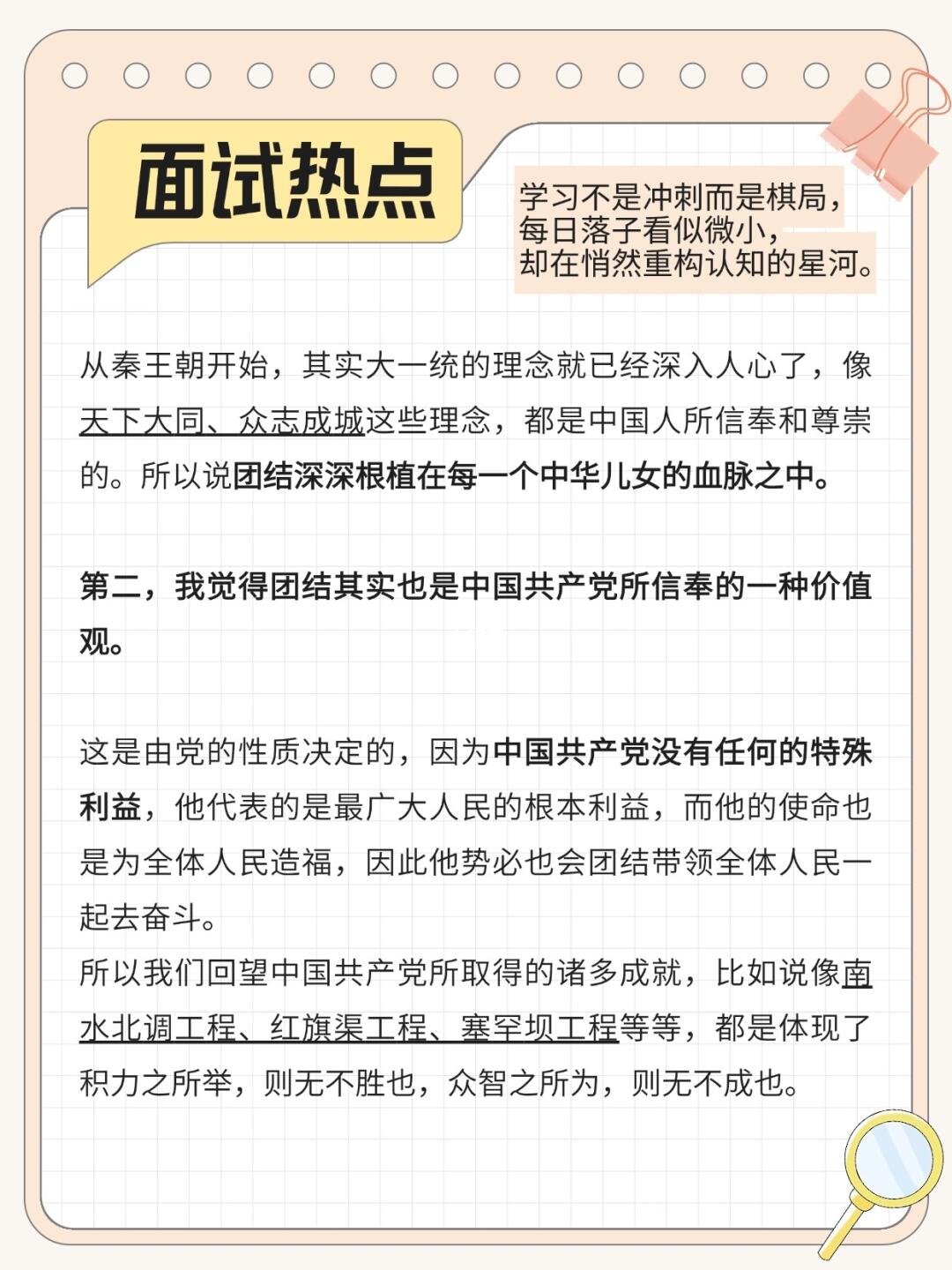 “积力之所举,则无不胜也,众智之所为,则无不成也”谈看法 这道题可以按照【是什么为什么怎么办】的方向展开,先聊一聊这句话是什么意思,再结合当下谈我们为什么要团结,最后结合现实的背景聊一聊怎么样做到这句话。还可以用【历史现实未来】的逻辑展开,本篇分享第二种答法文字稿,示范作答可进主页“申倩说面试”合集观看 公务员面试 结构化面试 公考面试热点 面试真题 面试技巧 事业单位面试 名言警句题 申倩说面试