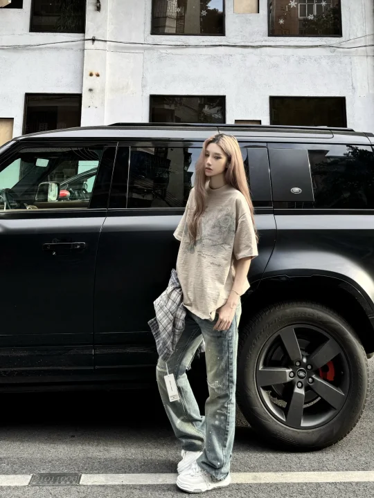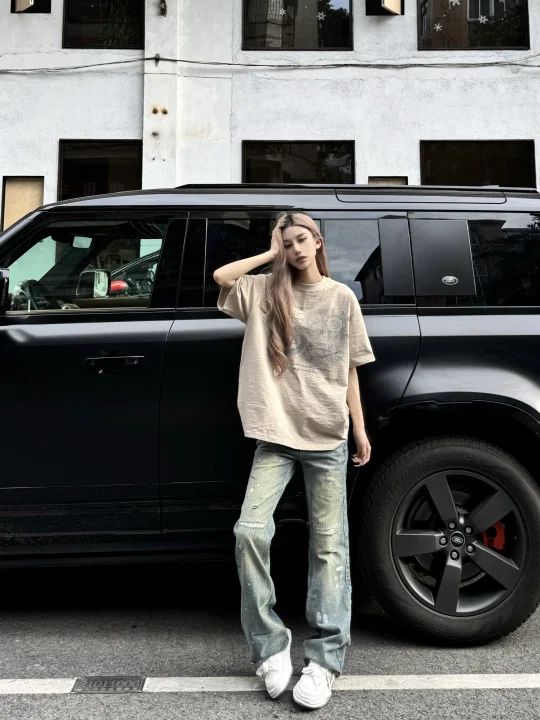 山林间的溪流绕着青石路,新中式上衣配牛仔喇叭裤,把国风温婉和休闲随性揉进山野的风