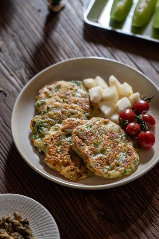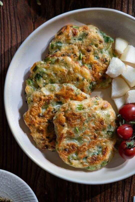 槐花季 这个槐花煎饼一定要试试,清香又好吃。 🥬🍆🍊🍅 食材:槐花/面粉/盐 做法: 1、槐花里加少许盐,清水洗几遍; 2、放面粉、盐,搅拌至粘稠状; 3、锅里刷油,舀一勺槐花糊到锅里,摊好,煎到金黄,翻面再煎到金黄,就可以了。 搭配当季新鲜蔬果,好看更好吃。 🥬🍆🍅🍉 每天都有好好吃饭 保持真诚与质朴 过寻常生活 踏实走好脚下的每一步 𖠚ᐝ