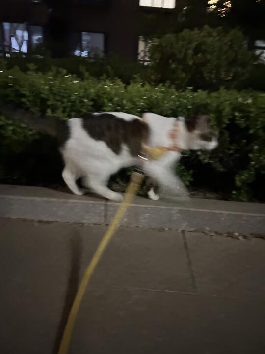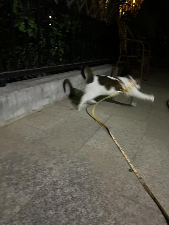 爬树、追刺猬、散步、抓虫,外面一条龙回家一条虫(因为回家被本铲擦爪子擦全身毛,待公主自己把毛再全舔一遍之后,滴驱虫药,洗耳朵,戴脖圈)