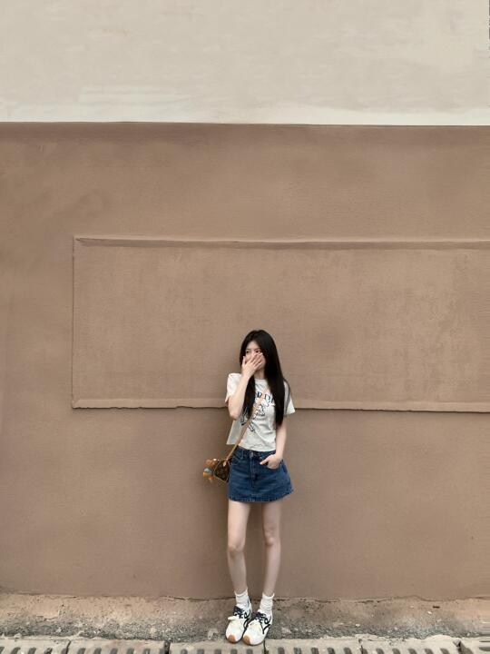 夏天在自然公园里,穿白色背心搭配黄色牛仔裤,妥妥就是甜美少女本女。白色背心清爽又