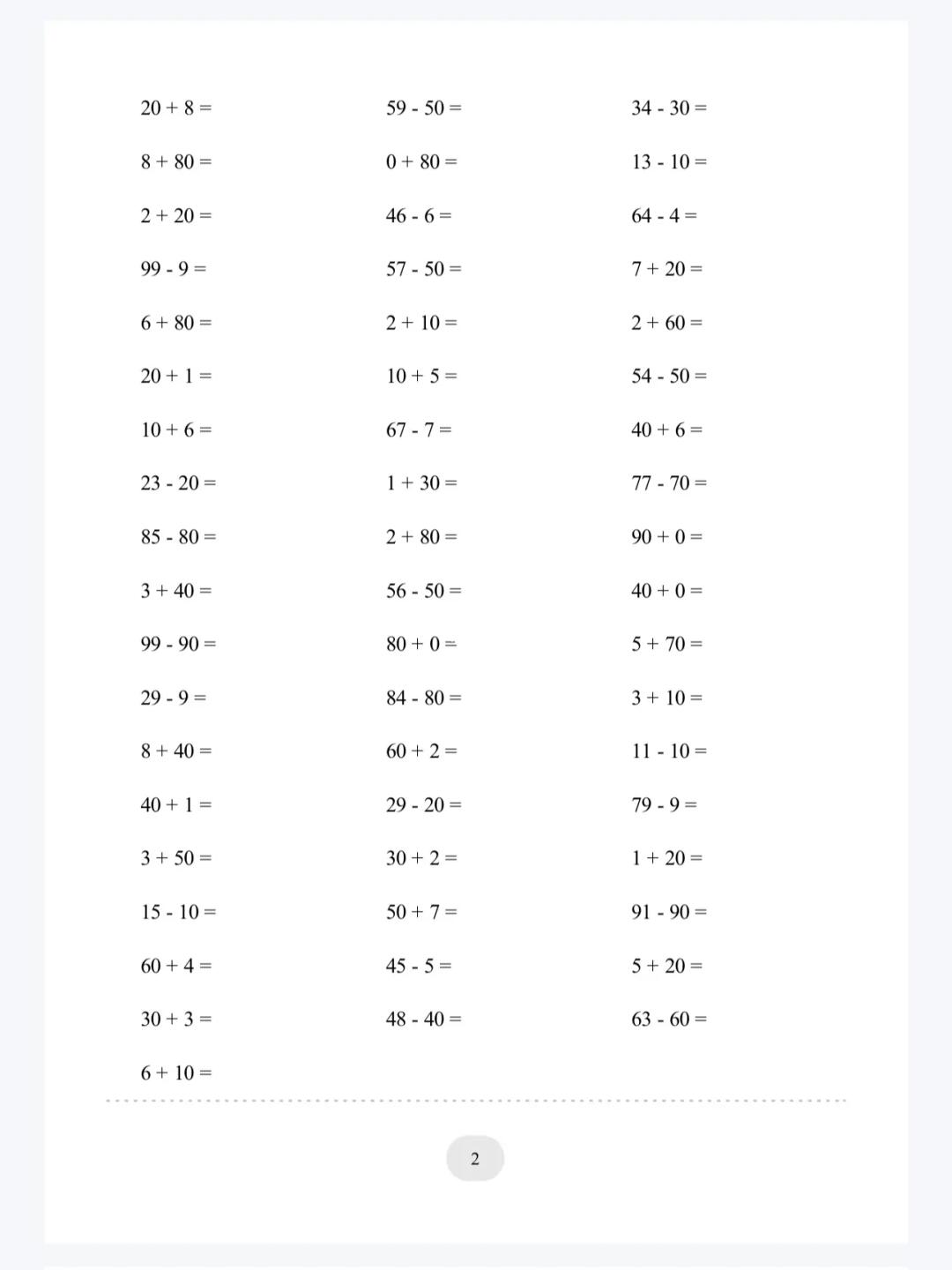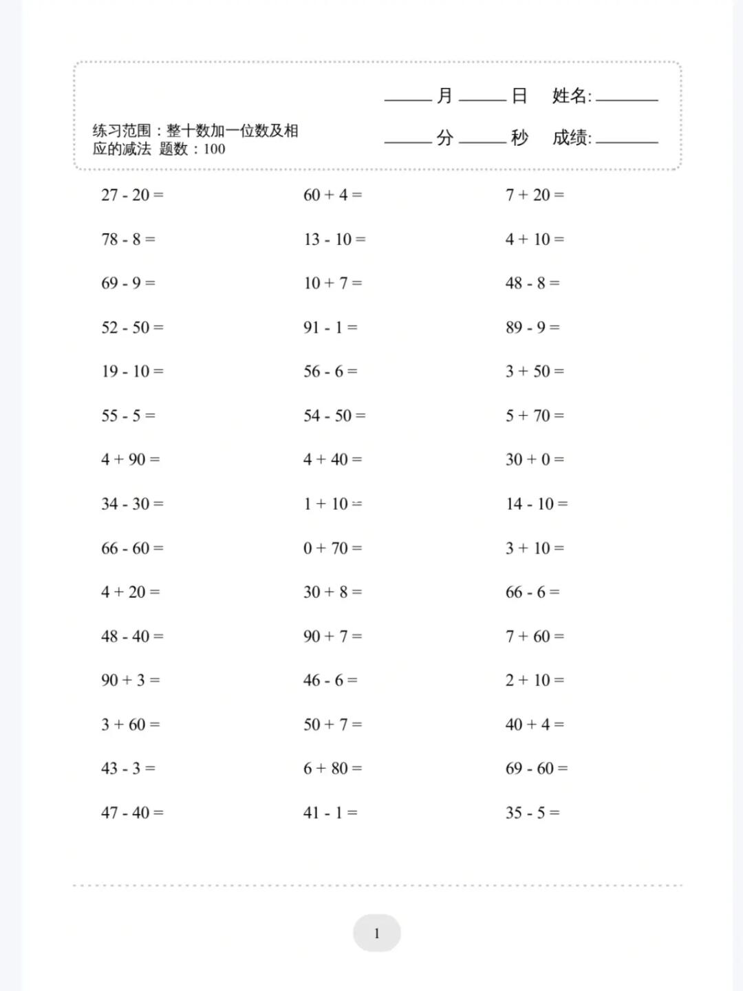 小学学习资料 口算 口算速算 加减法 打印资料 计算 一年级数学题