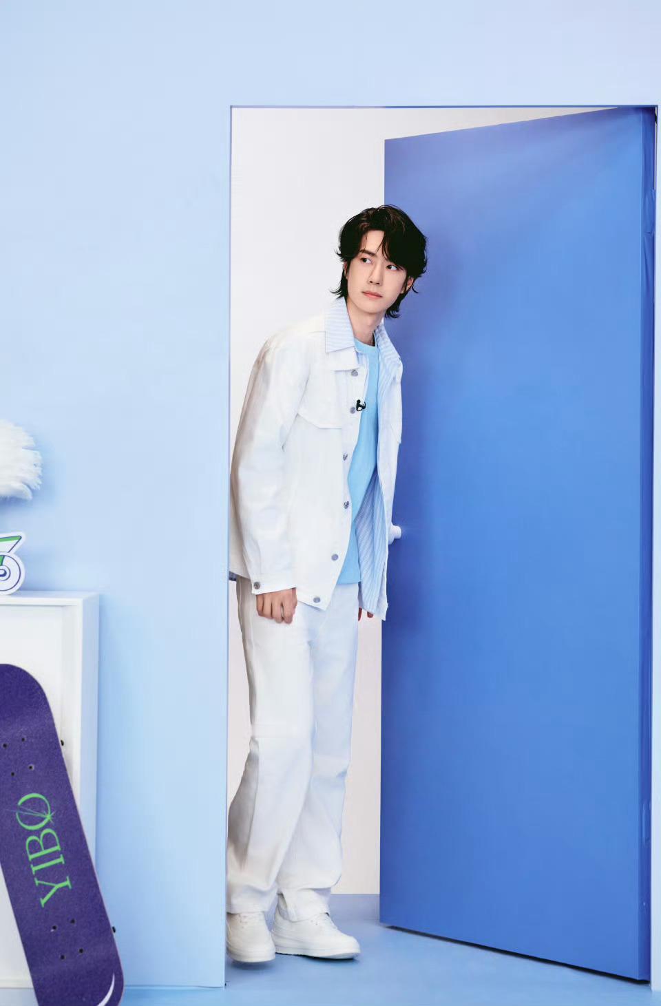 王一博蓝白色系叠搭活力王一博卷毛打网球王一博蓝白色系叠搭活力,卷毛造型好可爱啊!