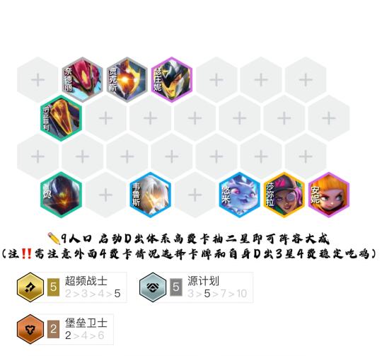 ✏️9人口 启动D出体系高费卡抽二星即可阵容大成(注‼️需注意外面4费卡情况选择卡牌和自身D出3星4费稳定吃鸡)