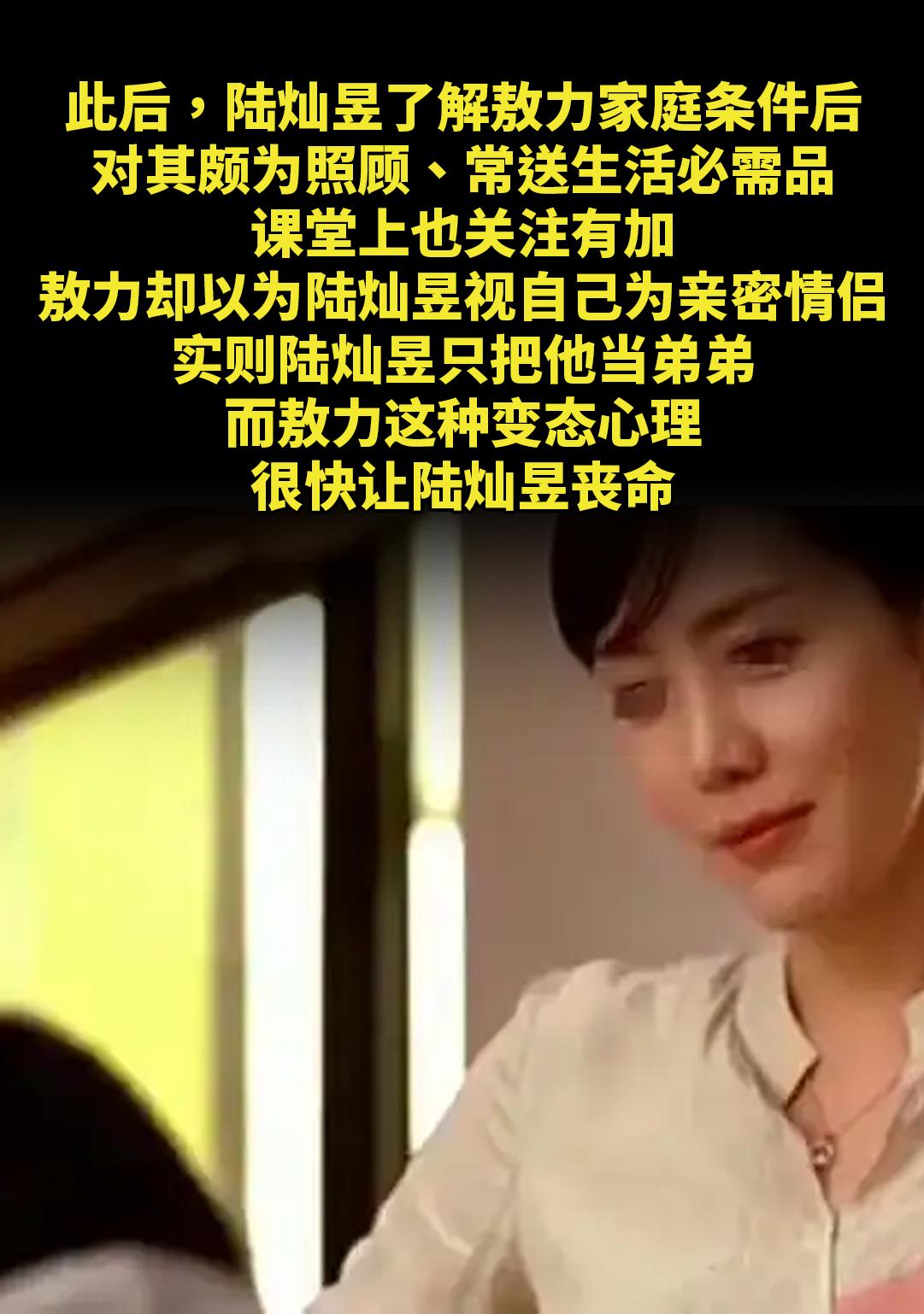 这位突遭厄运的老师陆灿昱年仅25岁,长相甜美、身材火辣,讲课生动认真,刚来到敖力那所学校时,班里学生不服管教让她压力大,一次敖力帮她解围,下课后陆灿昱道谢和微笑,竟让敖力心生异