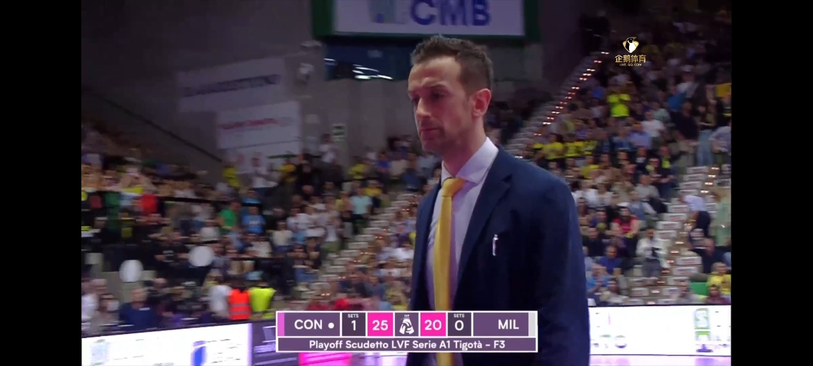 25比20,科内利亚诺再取胜第二局,2比0领先,离冠军只差一步之遥了!科内利亚诺进攻点多,哈克状态佳,刚才费内的决赛还能用发球博一博,米兰这里是毫无波澜,毫不恋战!第三局科内继续加油,一鼓作气完美收官[加油][加油]朱婷排球