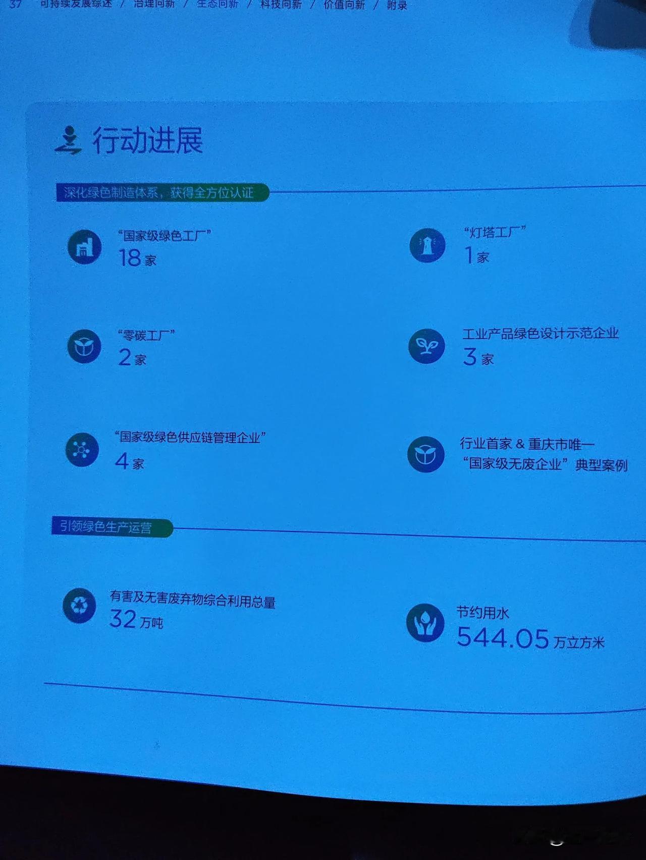 BOE京东方2024在可持续发展方面做了哪些工作? 18家工厂达到国家级绿色工厂标准,其中1家公司达“灯塔工厂”,8家公司加入科学碳目标倡议组织,2家工厂达“零碳工厂”,3家工业产品绿色示范企业,4家国家级绿色供应链管理企业。 温室气体减排量达8.71万吨二氧化碳当量,有害及无害废弃物综合利用重量32万吨,节约用水544.05万立方米。 今天,BOE京东方更是在北京推出可持续发展品牌「ONE」(Open Next Earth),再次以科技之力守护地球未来。[强]