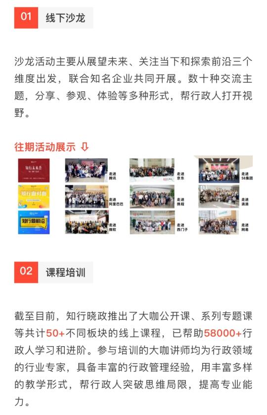 7⃣️截至目前,知行晓政推出了大咖公开课、系列专题课等共计50+不同板块的线上课程,已帮助58000+行政人学习和进阶