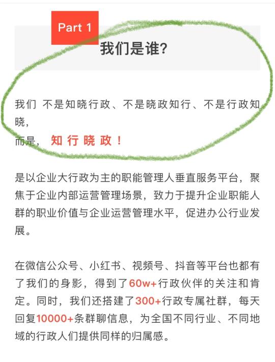 👍得到了60w+行政伙伴的关注和肯定。同时,我们还搭建了300+行政专属社群,每天回复10000+条群聊信息,为全国不同行业、不同地域的行政人们提供同样的归属感