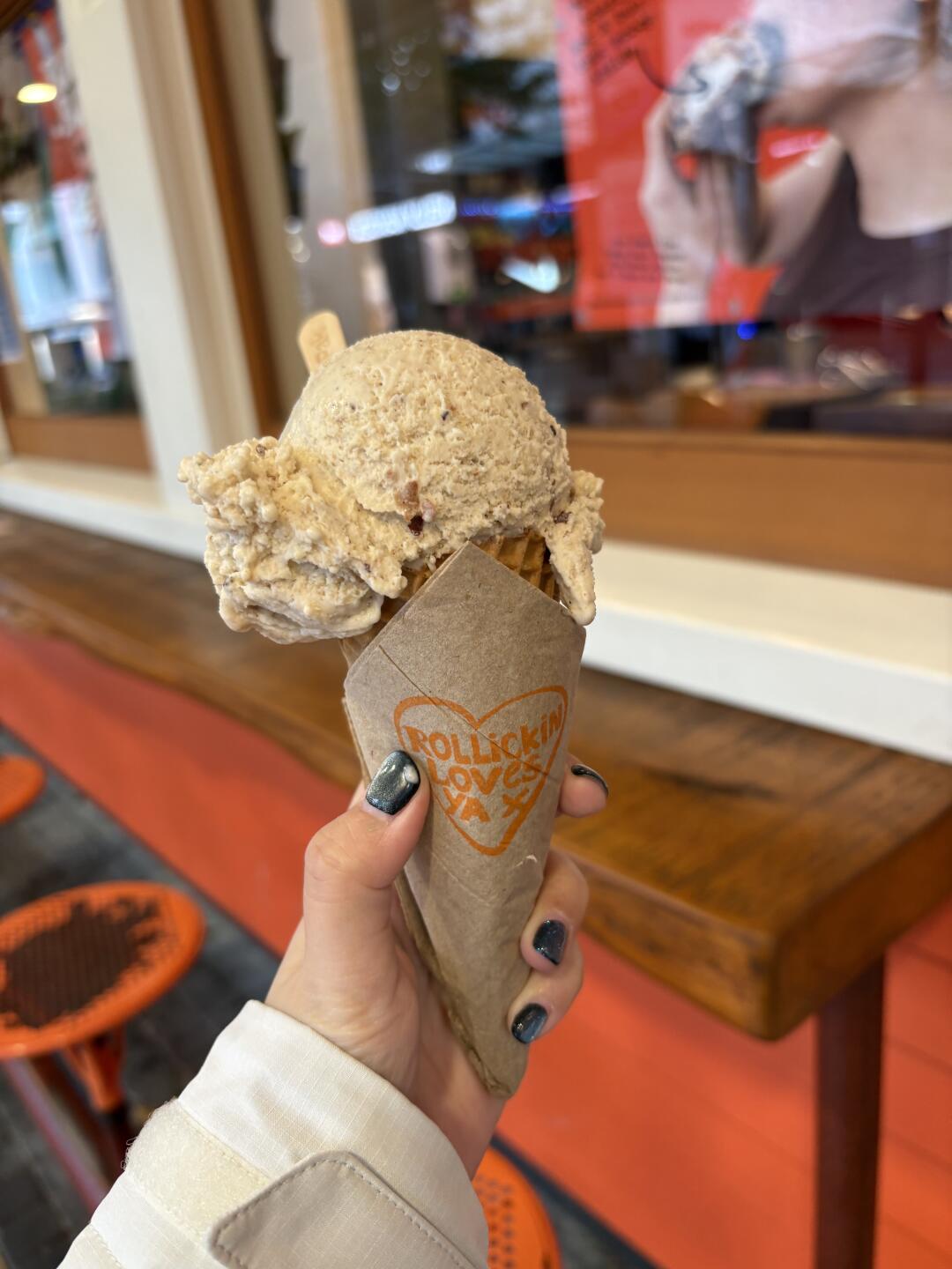 🍦Rollickin Gelato hot cross bun这个味道怎么没人推荐!惊为天人 每一口肉桂味好浓郁 质地很细腻 有点拉丝 肉桂味冰淇淋太特别了 额外加分[黄金薯R][黄金薯R] 融化得挺快的 甜筒脆脆的很好吃😋 比巴塔的甜筒好[亲一个R] 没买到开心果味有点可惜 试吃了别的味道巧克力很重比较甜 一般般(这家试吃也是好大方 一大勺一个😋