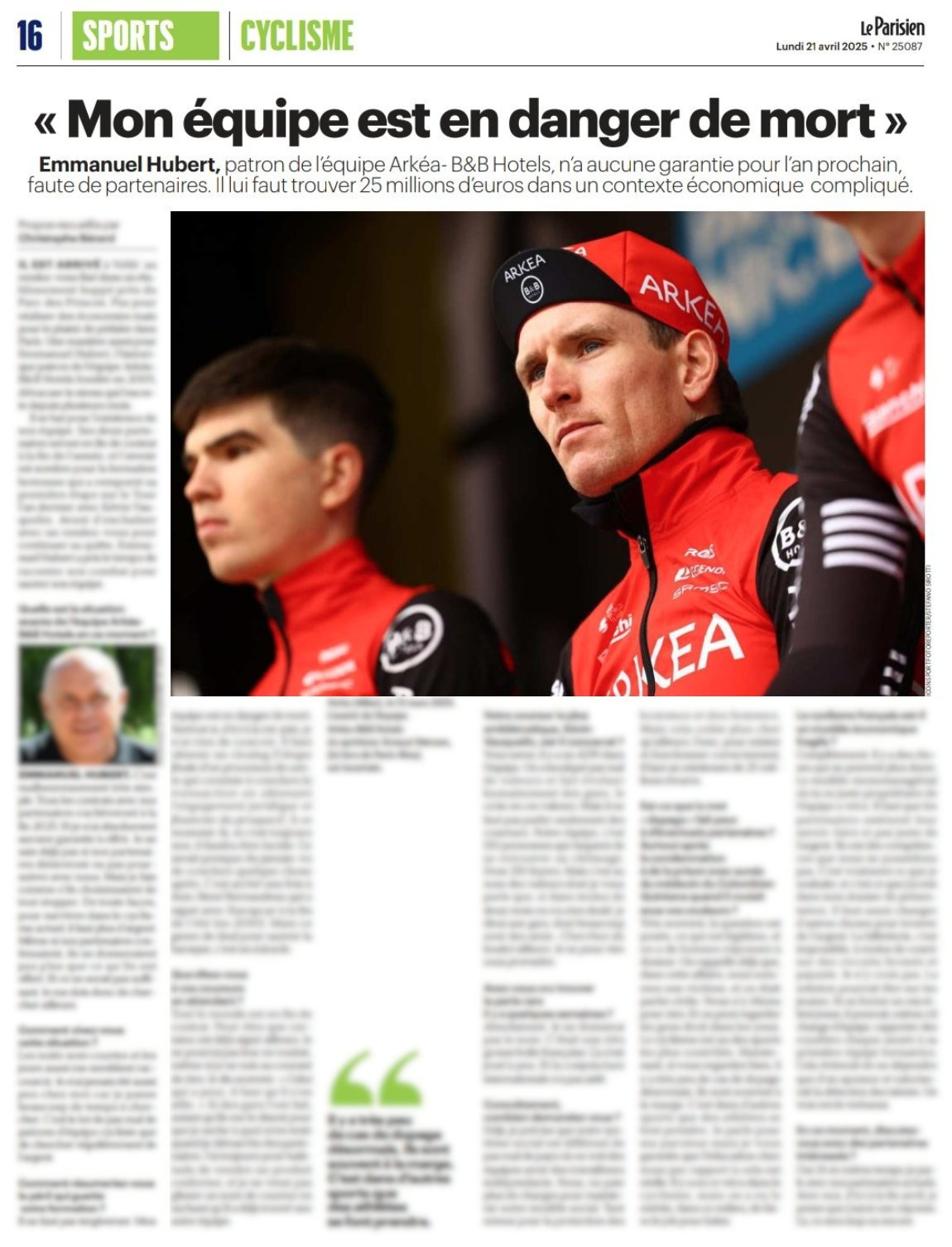 阿凯阿车队基本被判死缓了,不是说车队要降级,而是车队很可能要在赛季结束后解散。车队目前的处境:所有大赞助商的合同到2025年底,所有主力(德玛尔、沃克兰、莫扎托、塞内沙尔、文图里尼)都到2025年底。车队经理Emmanuel Hubert说他要找到2500万欧的预算才能保住车队。但这几乎是不可能完成的事情。四支法国顶级车队属于过剩了,找个小赞助商降级(实在不行降到洲际车队?)苟下去,也许是一种解决办法