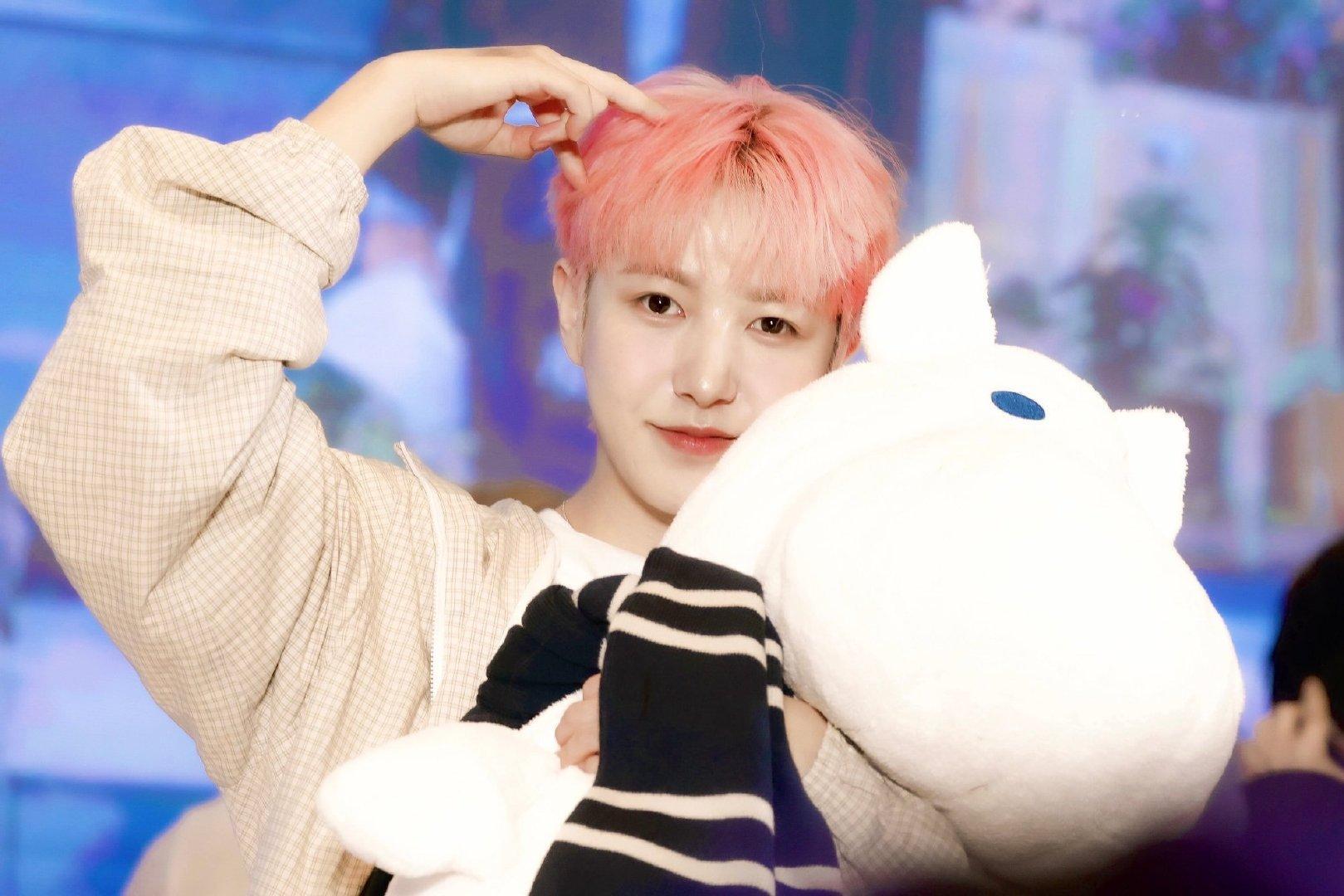 黄仁俊今日广州签售饭拍图“我不会说粤语” [兔子]互动太可爱了粉发顺毛造型好好看! cr: logo