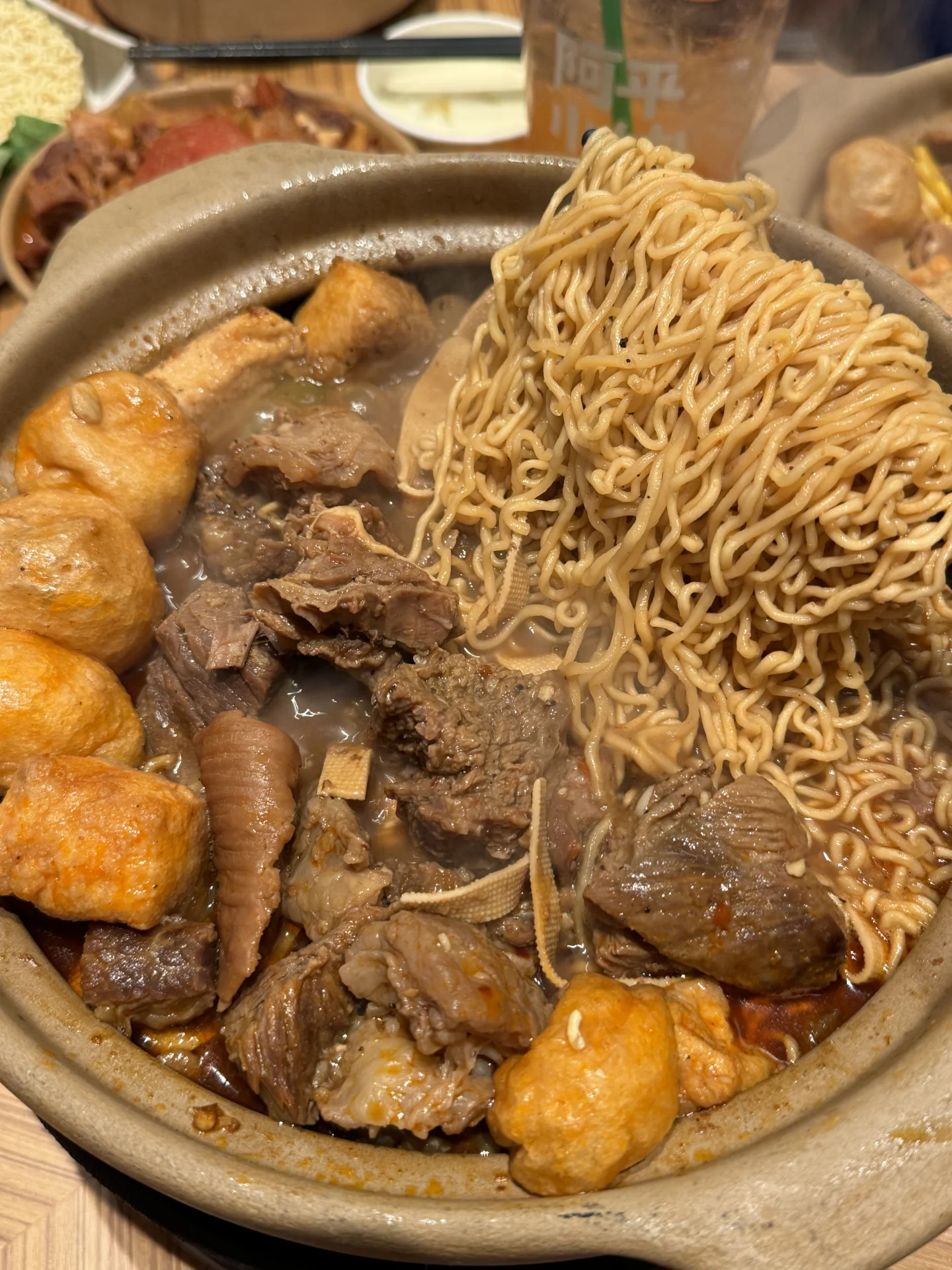 尤其是大口吃牛腩煲的!! 阿平牛腩煲jujuju好吃 大块的牛腩肉鲜嫩入味 底汁浓郁的不行还香香辣辣的 泡泡面绝了 还有七个番茄牛腩饭 特别浓郁的番茄味🍅 都泡软了米饭好好吃🤤 - 还有牛杂拌粉!!谁懂嗦粉的快乐 q弹爽滑的还有青菜🥬木耳 健康牛马餐 - 奶皮子酸奶跟北京那位一个味 香甜浓郁的 搭配落日余晖 好看解辣