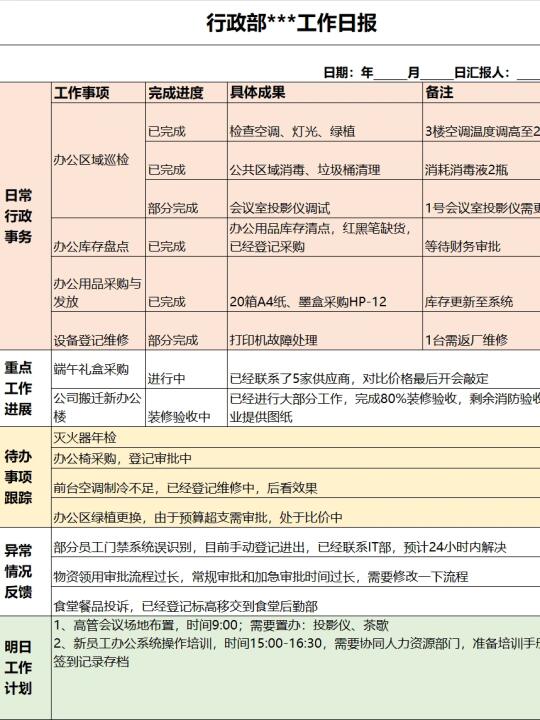 行政日报➕周报➕月报模板 分享给各位行政萌~