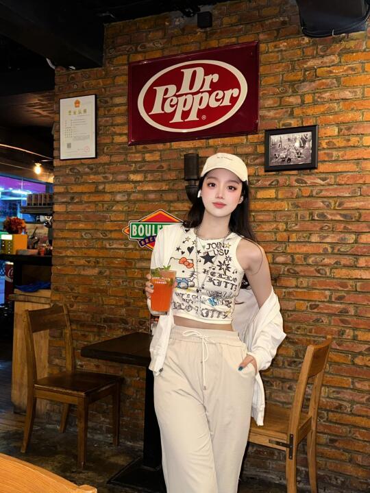 装修风格美式的烤肉店🥩 穿的休闲更出片哦 米色工装裤👖 夏天穿着清凉 好舒服🧊