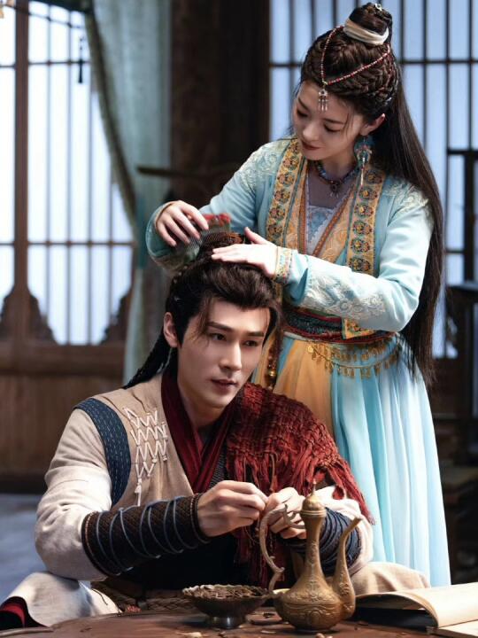 北靖领主霍擎云与皇北霜,从最初的相互利用,到后来的真心相爱,两人的感情线细腻又动人。男女主联手搅动风云的片段堪称全剧高光。在大漠的风沙中,他们并肩作战,对抗各方势力。皇北霜用智慧出谋划策,霍擎云以武力保驾护航,两人配合得天衣无缝。每一次陷入绝境又成功反转,都让观众的心提到嗓子眼。特别是那场在沙漠绿洲的生死之战,画面美到窒息,紧张刺激的打斗和两人坚定的眼神,氛围感直接拉满,嗑CP嗑到上头!