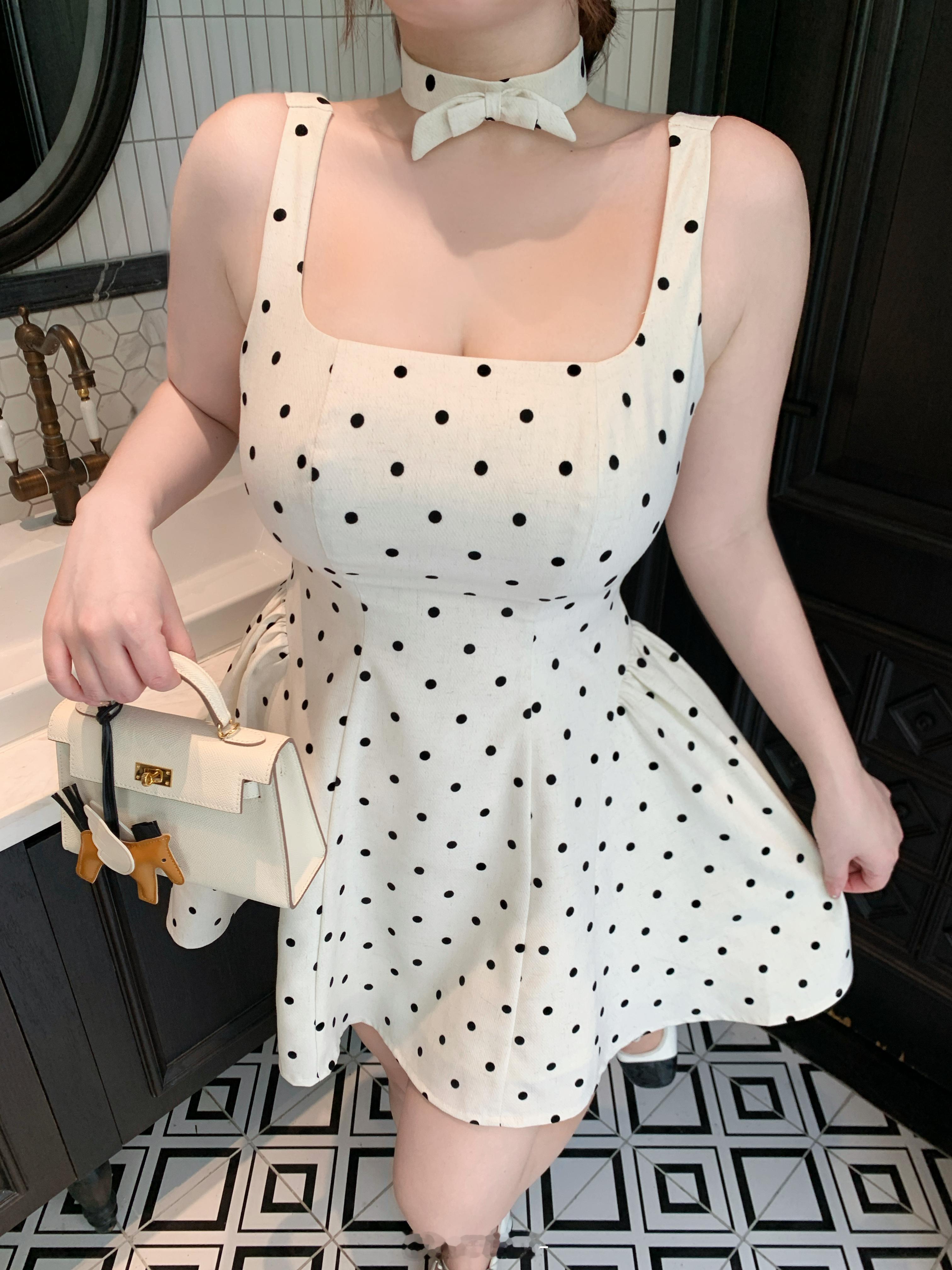 欣欣子同款“黑糖波波裙”🧋来啦~ 面料给脑婆们做的一个梭织波点杂色斜纹面料🫶🏻 大方领的设计超级修饰肩颈线条 对方圆脸的脑婆超级友好✨ 腰两侧也做了破缝缩褶分割 上身超级小公主呢 配套的chocker咱们现在下单也是送的哦~‼️