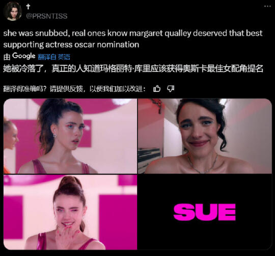 “Sue says thank you”,玛格丽特·库里未获得本届奥斯卡提名。 外网网友纷纷鸣不平,Sue好,奥斯卡坏[失望R] 电影 看电影 电影推荐 电影分享 某种物质 恐怖片 恐怖电影 演员 奥斯卡 好莱坞