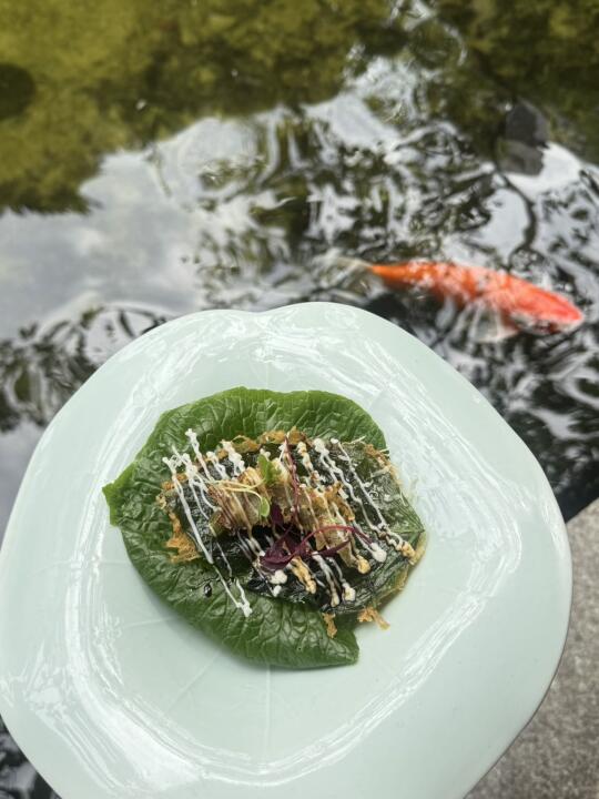 太美了太美了!不是苏州是广州! 在淘金的山水庭院🏡 绿树成荫、小亭瀑布、鱼儿欢游。。。 不愧是闹市中的世外桃源!静静去享受这素食🌱Omakase,连明⭐️陈慧琳也去啦🥺