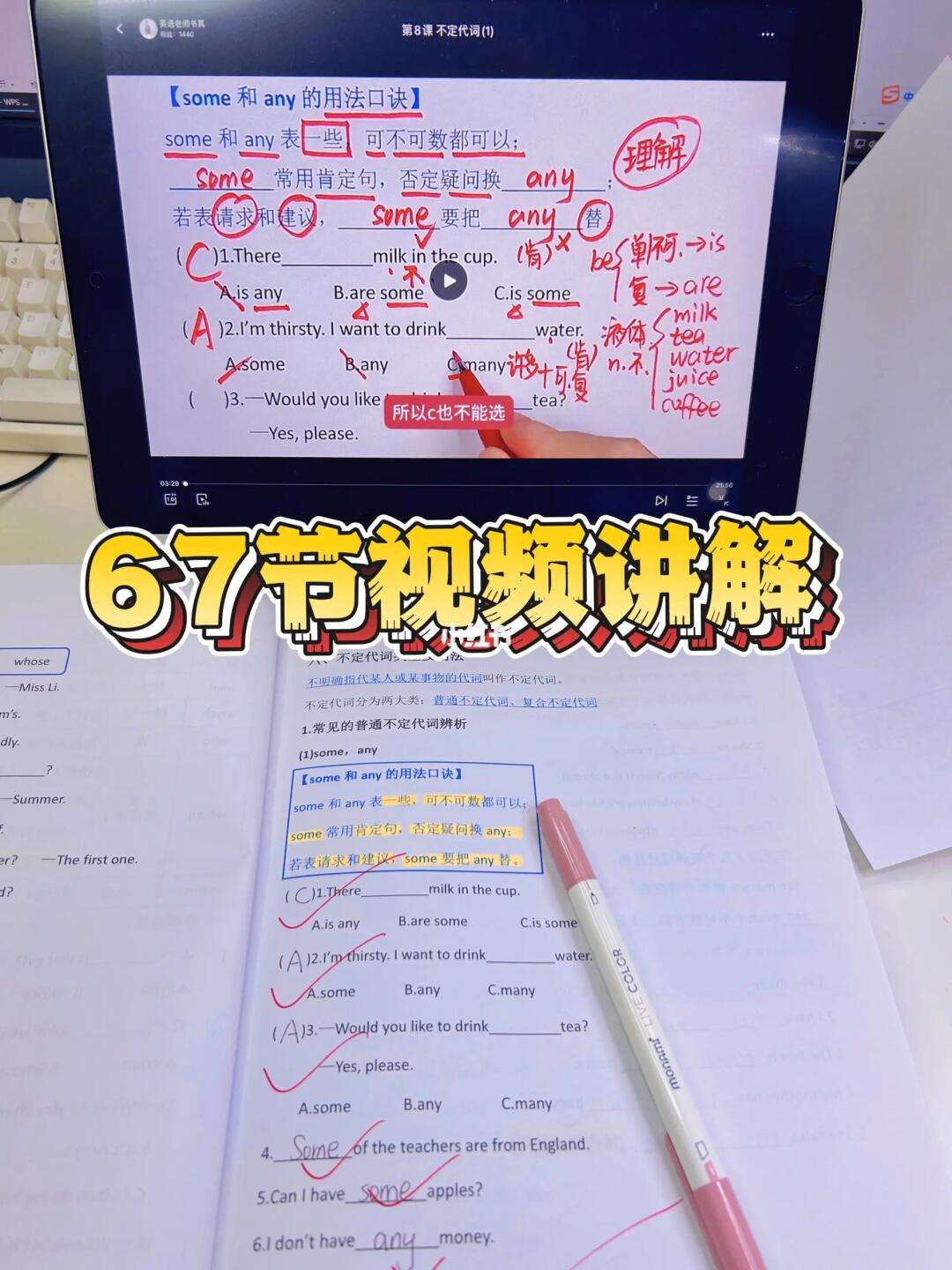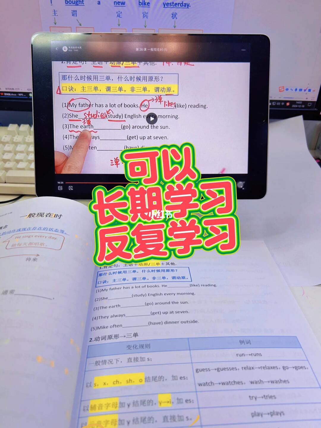 ✅67 节英语语法视频讲解课程 📺课程包含小学初中的重点语法知识点,理论习题结合,课程里面有很多小口诀小技巧帮助同学们理解复杂的文字表达,简洁明了,清晰易懂。比如小学要掌握4个时态,初中要掌握4+4个时态,每个时态都配有时间轴理解,口诀,小技巧,题目等等帮助理解掌握。 ✍🏻每个理论知识每一道题会详解讲解。视频讲解与纸质讲义一一对应。购课赠送对应讲义,239页彩印快递包邮。 👨🏻‍🎓每不分年级不分版本,语法知识是通用的。课程没有时问限制,可以长期学习反复学习。67节课,平均每节课20分钟左右不等。 ✅课程讲解的是实实在在的知识点,跟着视频踏踏实实学习下来,学到多少个知识点都是你的。早学习,早收获!
