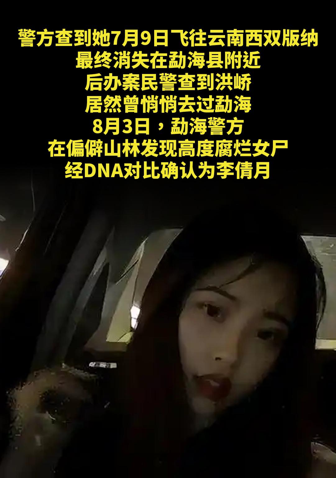 警方查到她7月9日飞往云南西双版纳,最终消失在勐海县附近。后办案民警查到洪峤居然曾悄悄去过勐海。8月3日,勐海警方在偏僻山林发现高度腐烂女尸,经DNA对比确认为李倩月。