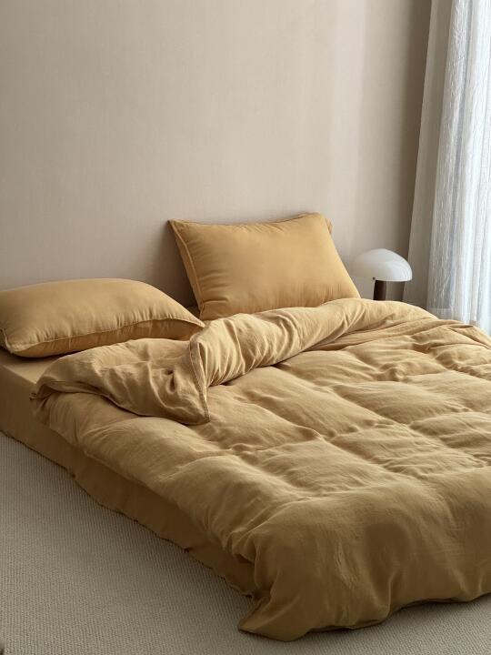 很高级小众的色系,不一样的黄色系,这一款天丝呈现出哑光的质地,这种干净哑光的黄色系特别的少见,铺在卧室非常的提色。