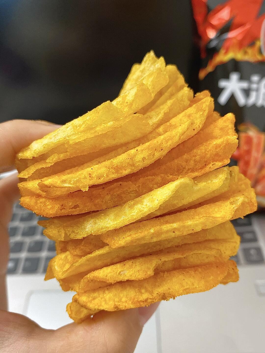 前两天在便利店发现乐事大波浪又出新口味了!! 火鸡面味和辣条味!喜欢吃辣的又爱吃薯片打算买回来尝尝 火鸡面味吃着就是有点酱香,蛮浓郁的口感也丰富 我个人觉得还是挺不错的,很新奇的口味[哇R] 辣条味油香油香的~,辣条的味道薯片的口感 入口脆脆辣辣好过瘾! 一边刷剧一边炫真的太满足了! !
