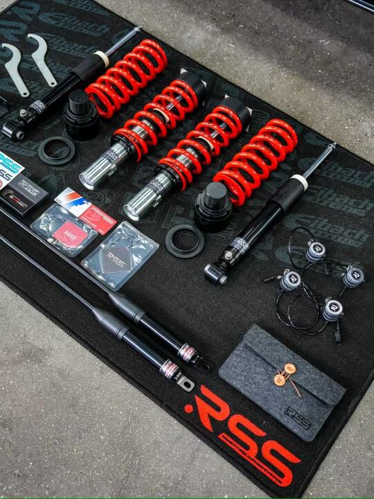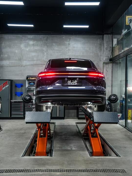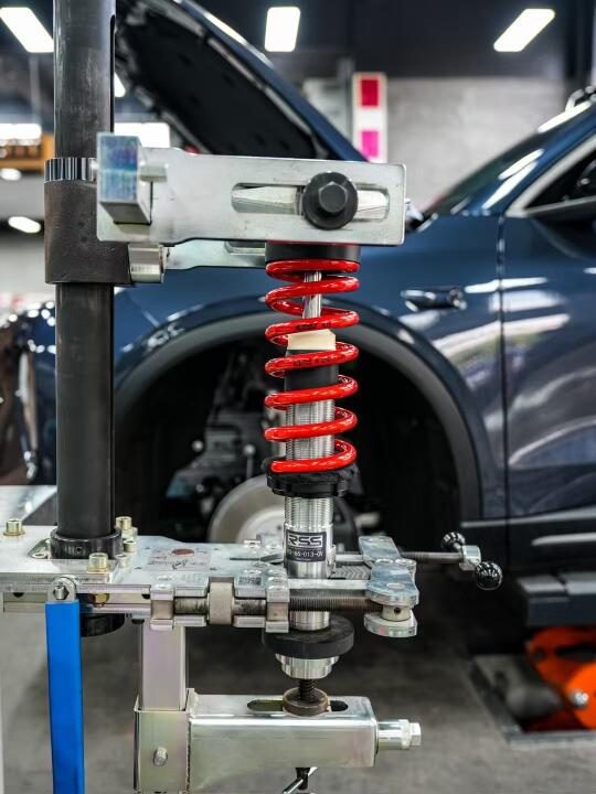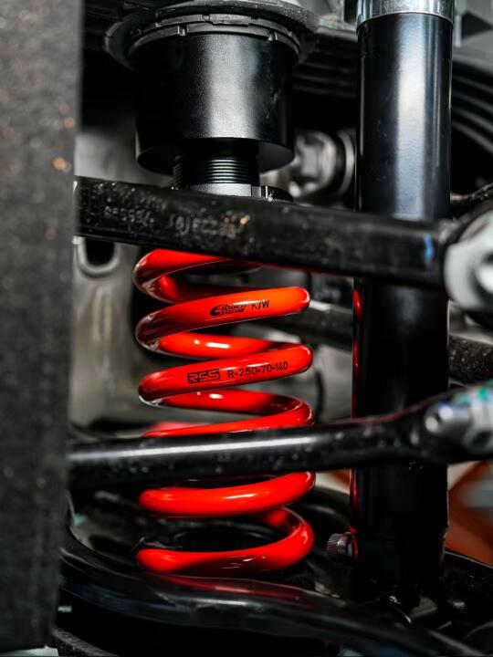 蔚来EC6升级 RSS绞牙避震,改善原车摇晃后排抛跳问题。 RSS避震高低可调,24段软硬阻尼可调,艾巴赫代工弹簧,搭配BOFFIN阻尼杆,让车子开起来干脆利索。